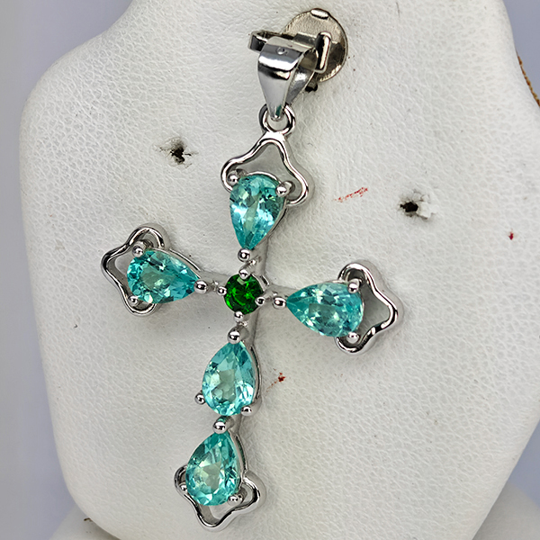 Natural Paraiba Color Apatite Real 925 Sterling Silver Jewelry 2.60 Grams Pendant