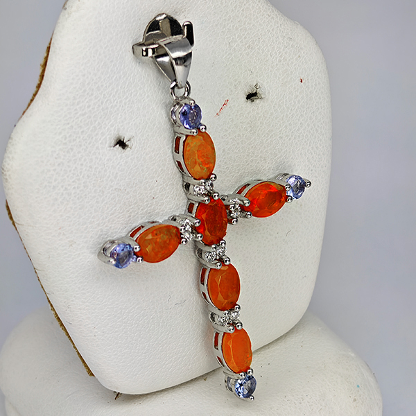 Natural Multi Color Fire Opal Real 925 Sterling Silver Jewelry 3.08 Grams Pendant