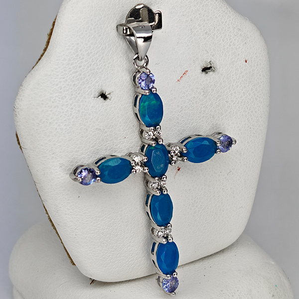 Natural Multi Color Blue Opal Real 925 Sterling Silver Jewelry 3.08 Grams Pendant