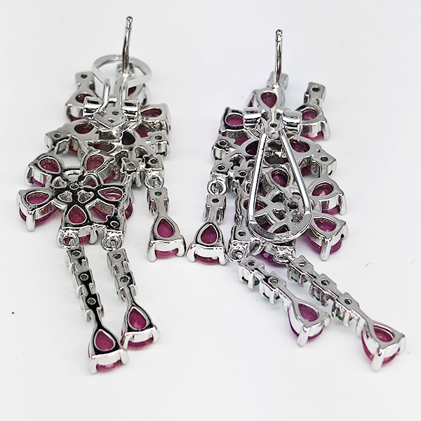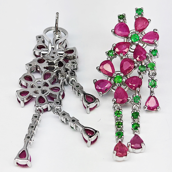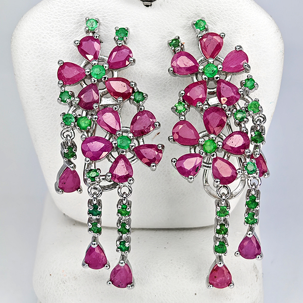 Natural Emerald And Ruby Real 925 Sterling Silver Jewelry Earring 12.96 Grams