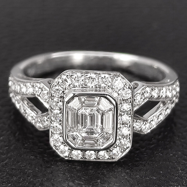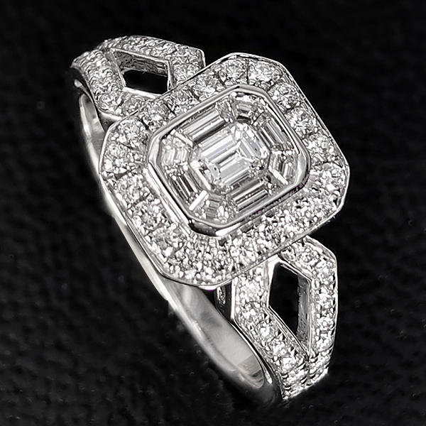 Natural White Diamond With White Gold 18 K Jewelry 4.10 Grams Ring Size 6.50