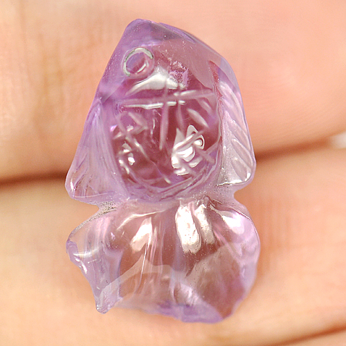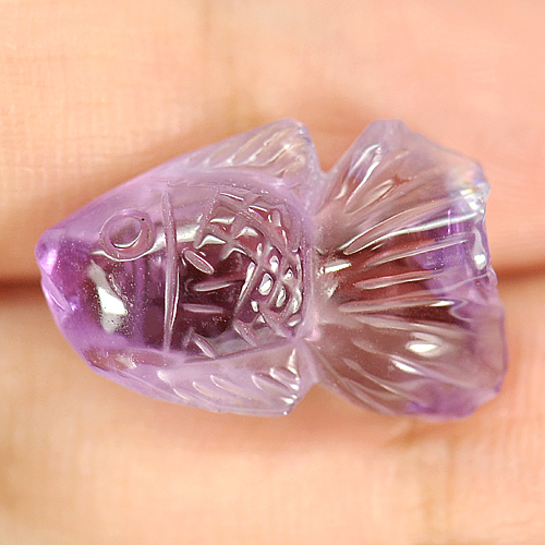 Purple Amethyst 7.96 Ct. Fish Carving 17.3 x 11.4 Mm. Natural Gemstone Unheated