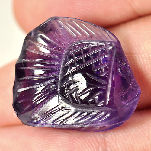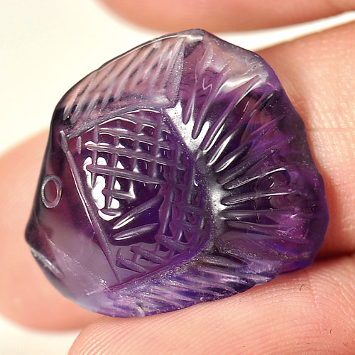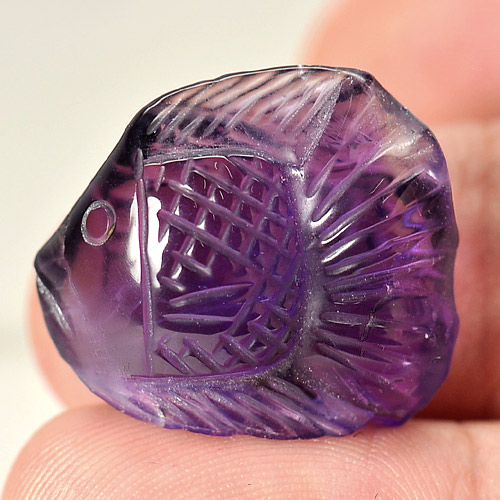 Purple Amethyst 18.91 Ct. Fish Carving 21 x 18.8 Mm. Natural Gem From Brazil