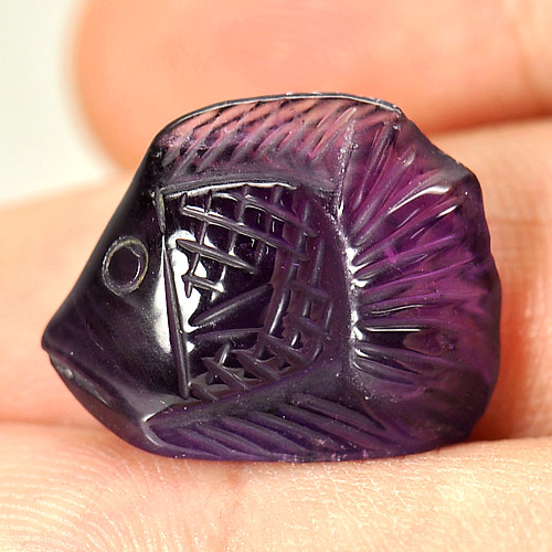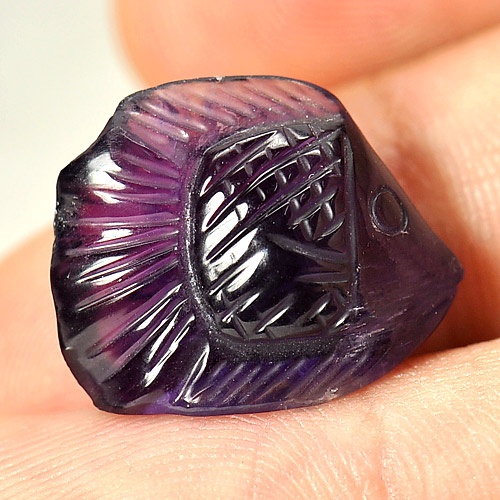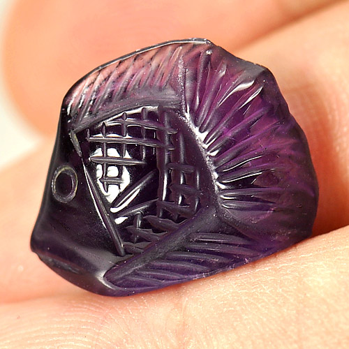 11.75 Ct. Carving Fish Natural Violet Amethyst Brazil Unheated