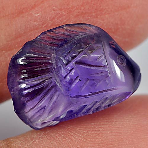 Unheated 6.57 Ct. Fish Carving Natural Gemstone Violet Amethyst From Brazil