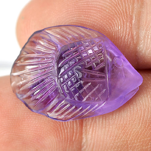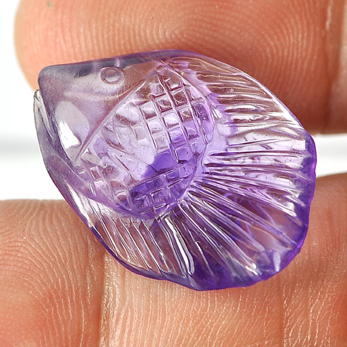 Purple Amethyst 11.04 Ct. Fish Carving 23 x 16.2 Mm. Natural Gemstone Unheated