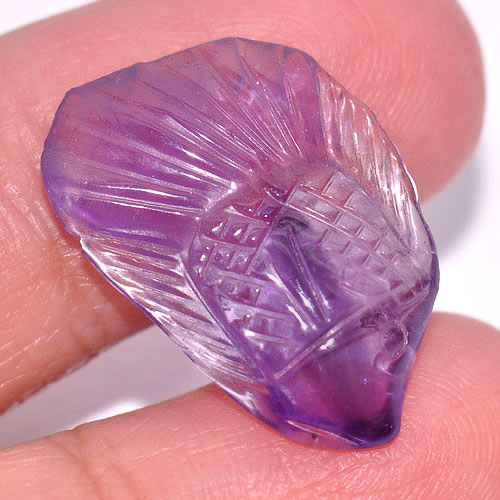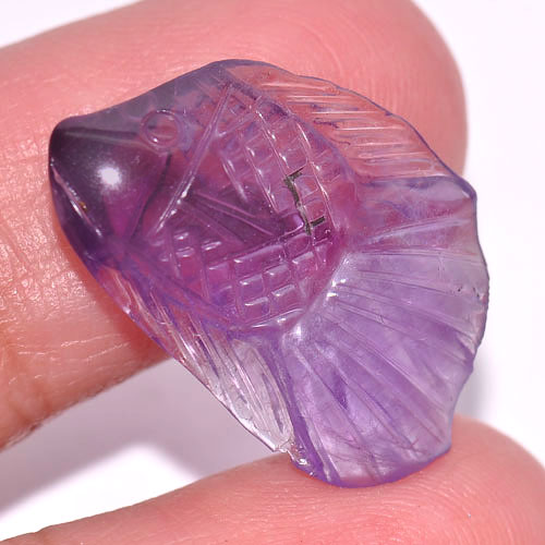 Purple Amethyst 8.75 Ct. Fish Carving 22 x 14.9 Mm. Natural Gem From Brazil
