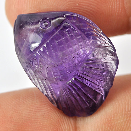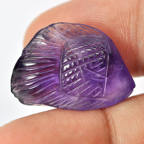 Purple Amethyst 18.02 Ct. Fish Carving 22 x 15.7 Mm. Natural Gemstone Unheated
