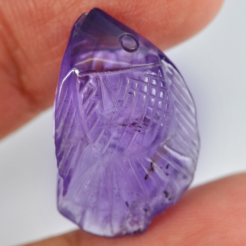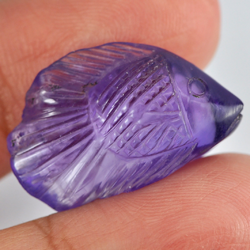 Unheated 14.92 Ct. Fish Carving Natural Gemstone Violet Amethyst