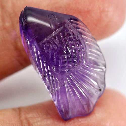 Unheated 13.58 Ct. Fish Carving Natural Gemstone Violet Amethyst