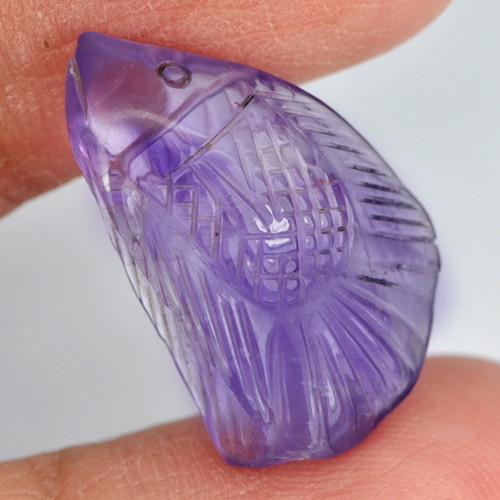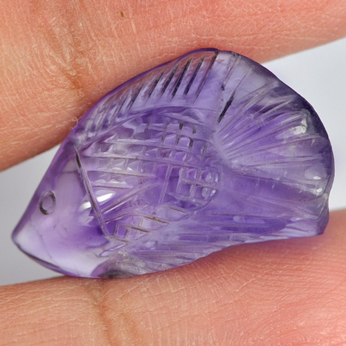 Purple Amethyst 9.26 Ct. Fish Carving 21.5 x 13.1 Mm. Natural Gemstone Unheated