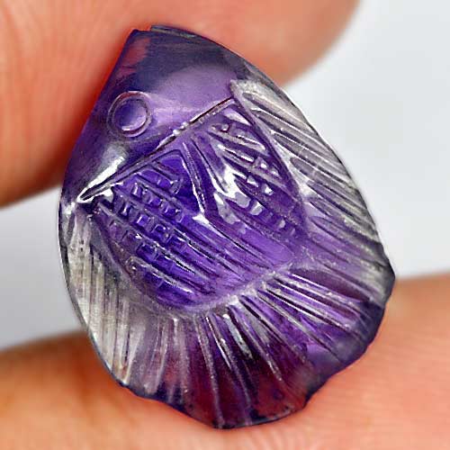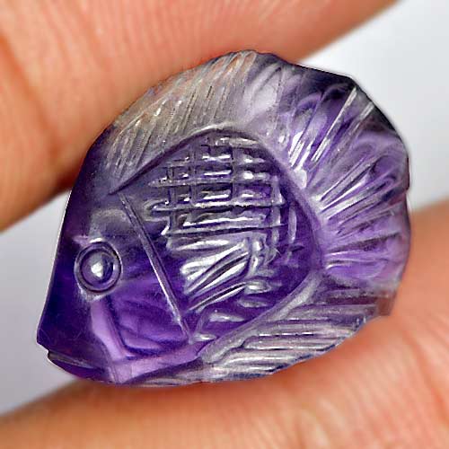 Unheated 10.85 Ct. Fish Carving Natural Gem Violet Amethyst Brazil