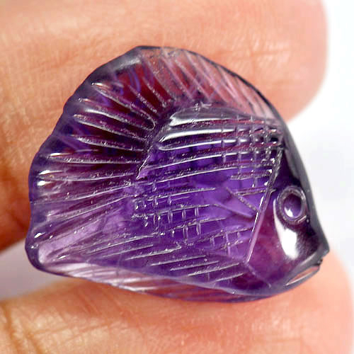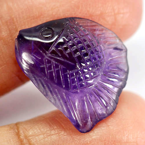 Purple Amethyst 12.26 Ct. Fish Carving 20 x 11.5 Mm. Natural Gem Unheated Brazil