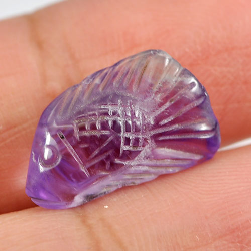 Unheated 5.61 Ct. Fish Carving Natural Gem Violet Amethyst Brazil