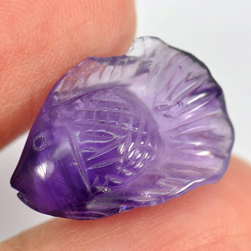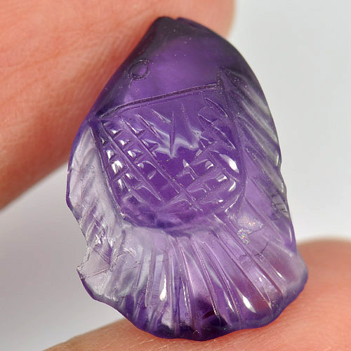 10.50 Ct. Nice Fish Carving Natural Gem Violet Amethyst Unheated