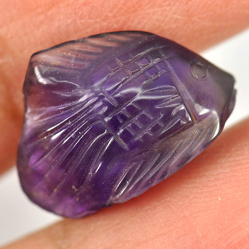 Delightful Gem 6.42 Ct. Fish Carving Natural Violet Amethyst Brazil