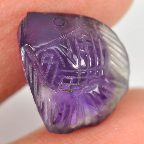 Delightful Gem 7.03 Ct. Fish Carving Natural Violet Amethyst Brazil