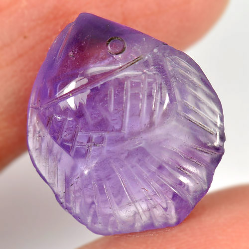 7.64 Ct. Beautiful Fish Carving Natural Gem Violet Amethyst Unheated