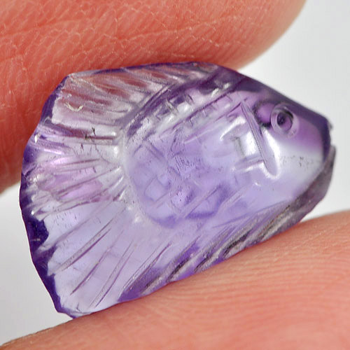 Purple Amethyst 4.95 Ct. Fish Carving 15.9 x 10 Mm. Natural Gem From Brazil