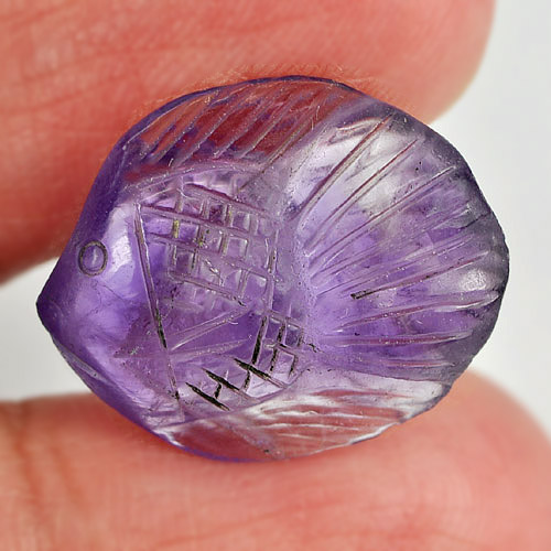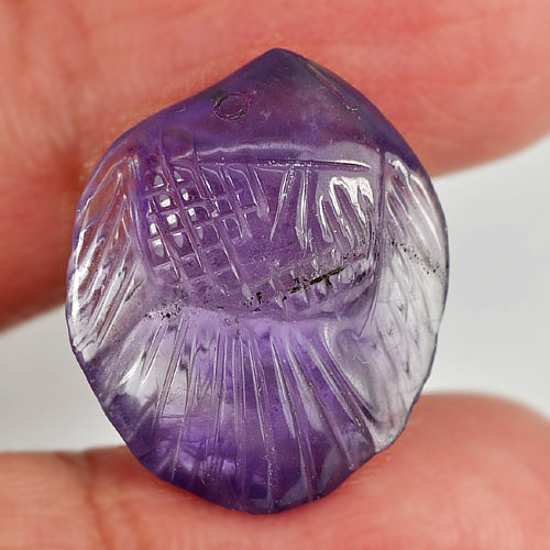Purple Amethyst 10.12 Ct. Fish Carving 19.4 x 16 Mm. Natural Gem Unheated Brazil