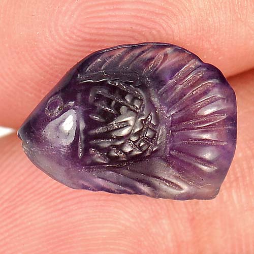 Unheated 5.37 Ct. Fish Carving Natural Gem Violet Amethyst Brazil