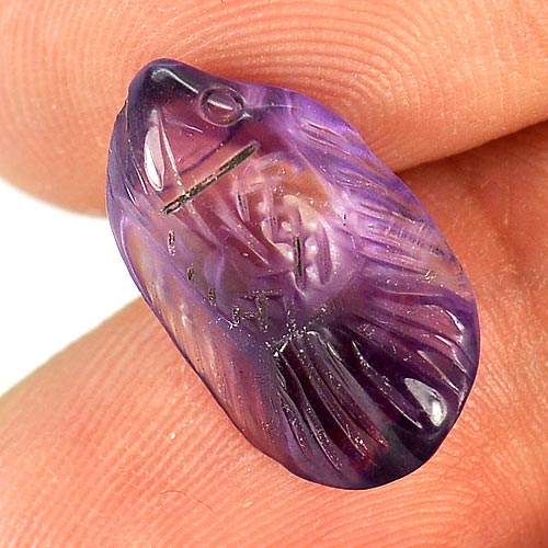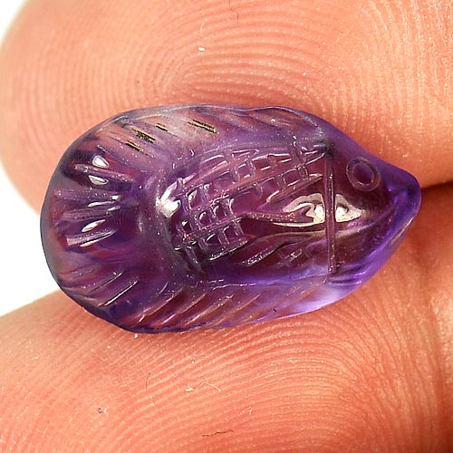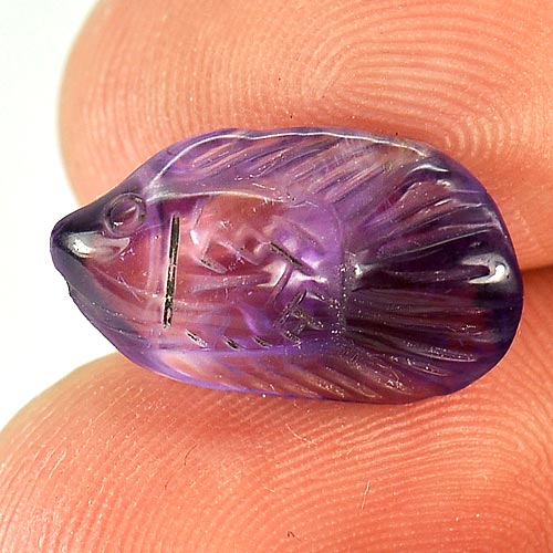 Violet Amethyst 4.66 Ct. Fish Carving 16.2 x 9.6 Mm. Natural Gem Unheated Brazil