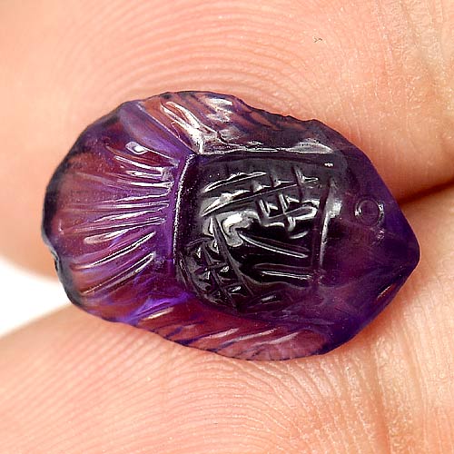 Natural Gem 4.28 Ct. Good Fish Carving Violet Amethyst Unheated
