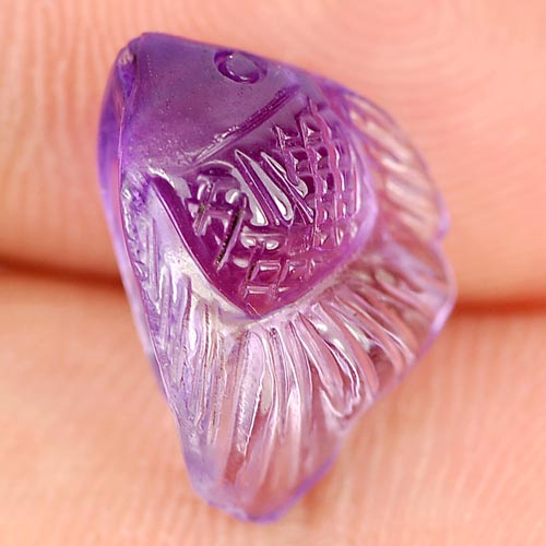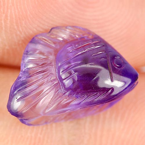 Purple Amethyst 4.57 Ct. Fish Carving 14.5 x 9.4 Mm. Natural Gemstone Unheated