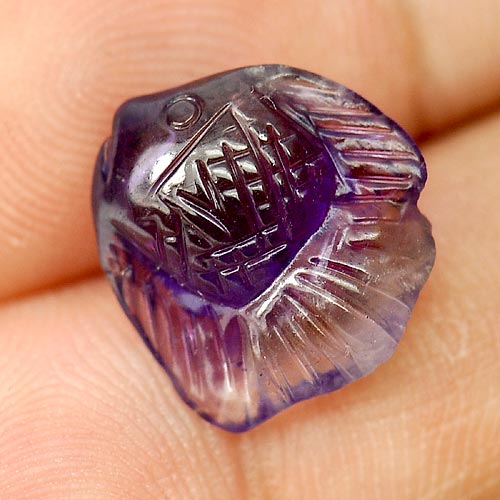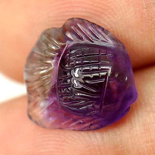 Purple Amethyst 4.01 Ct. Fish Carving 12.7 x 11.6 Mm. Natural Gemstone Unheated