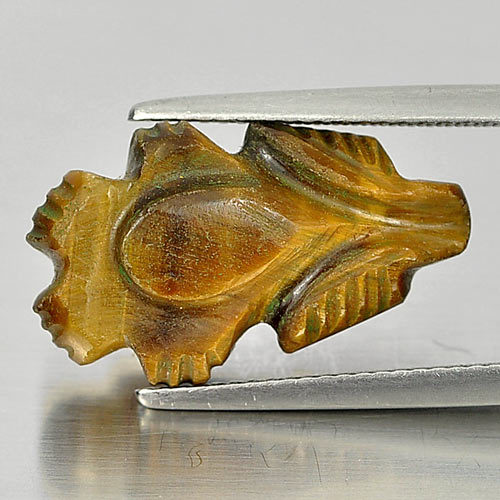 Vivid Color 8.71 Ct. Carving Leaves Natural Golden Tiger Eye From Thailand