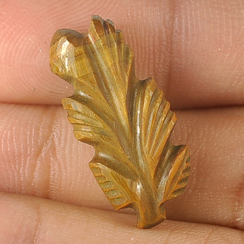 6.80 Ct. Carving Leaves Natural Golden Tiger Eye Unheated
