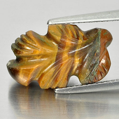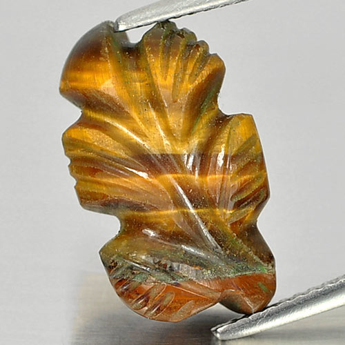 Alluring Color 8.59 Ct. Carving Leaves Natural Golden Tiger Eye From Thailand