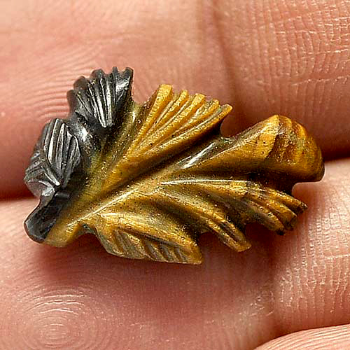 9.02 Ct. Lovely Carving Leaves Natural Yellow Golden Tiger Eye From Thailand