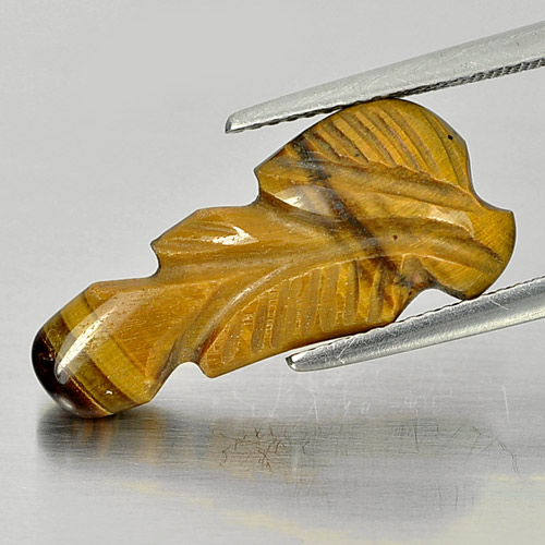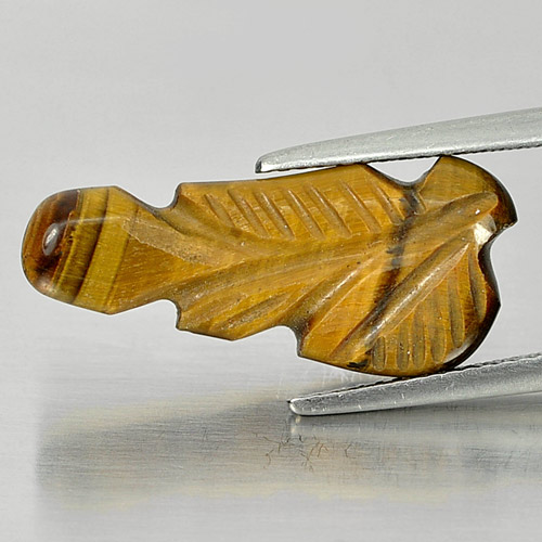 Beauty Color 6.84 Ct. Carving Leaves Natural Golden Tiger Eye From Thailand