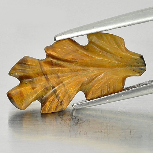 4.58 Ct. Carving Leaves Natural Golden Tiger Eye From Thailand Unheated