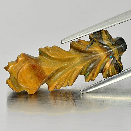 Vivid Color 8.00 Ct. Carving Leaves Natural Golden Tiger Eye