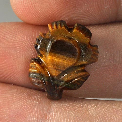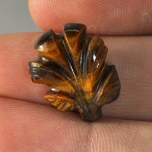 9.12 Ct. Charming Color Carving Leaves Natural Golden Tiger Eye Unheated