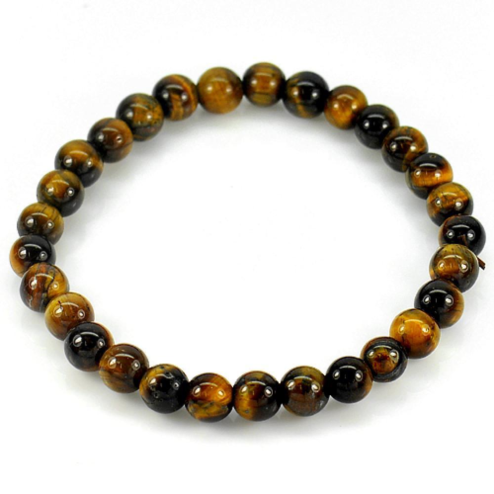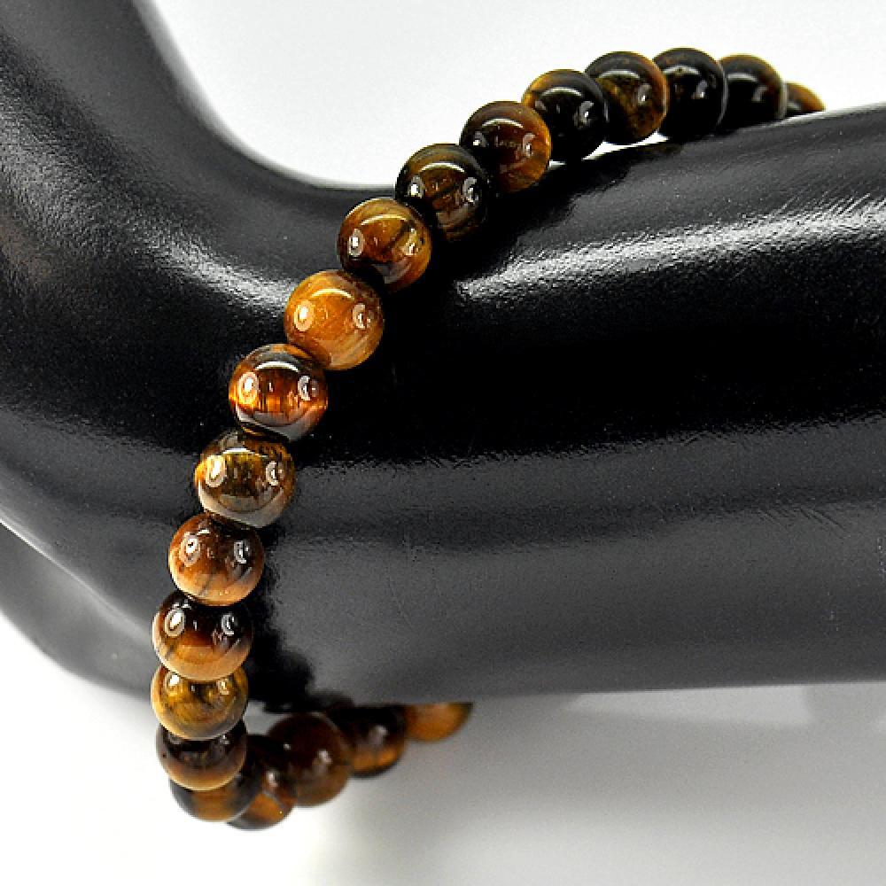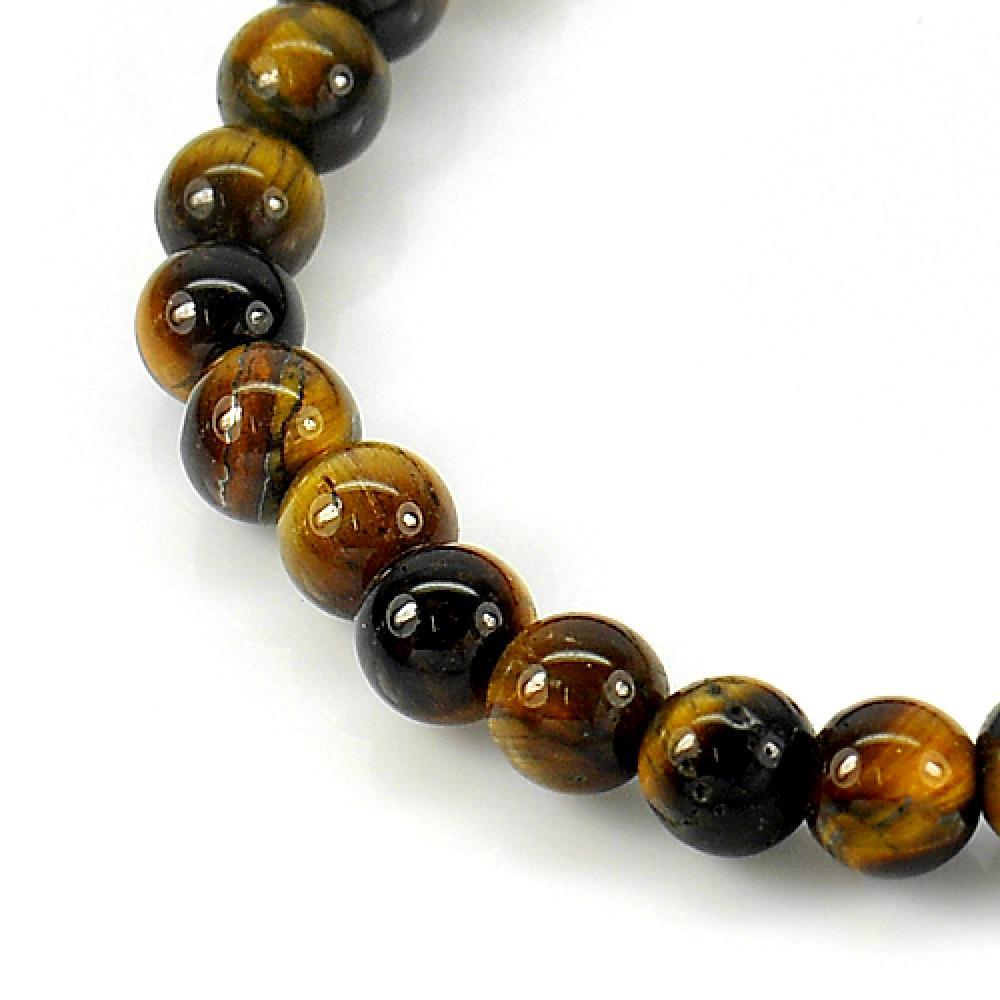 51.05 Ct. Natural Yellow Brown Color Tigers Eye Beads Bracelet Length 7 Inch.