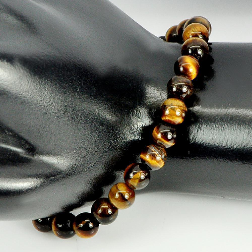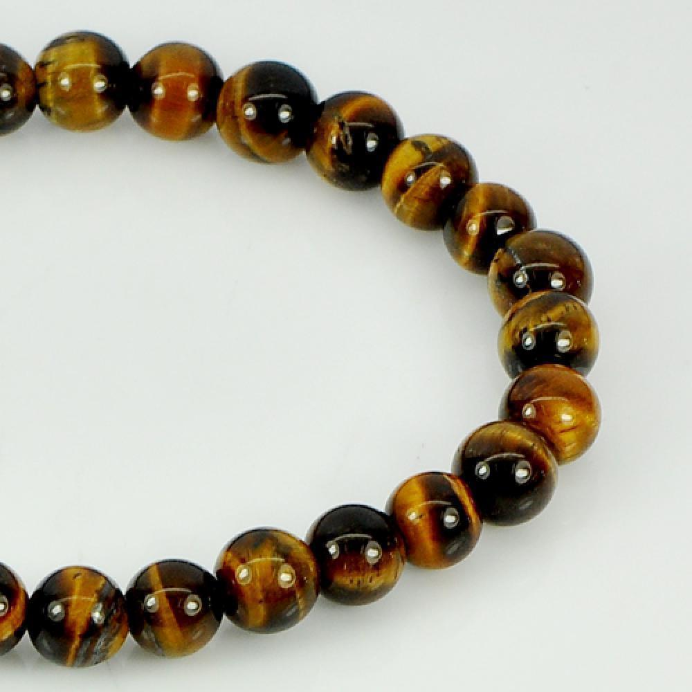 52.55 Ct. Natural Yellow Brown Color Tigers Eye Beads Bracelet Length 7 Inch.