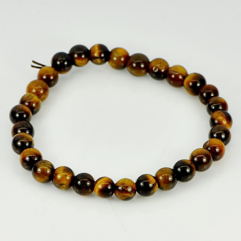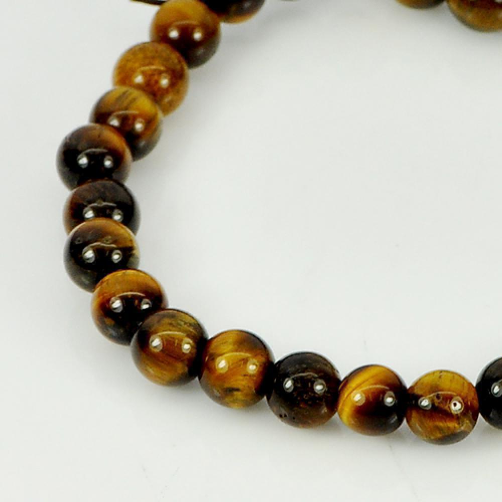 50.38 Ct. Round Cabochon Natural Yellow Brown Tigers Eye Beads Bracelet 7 Inch.