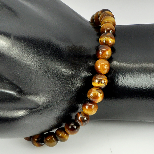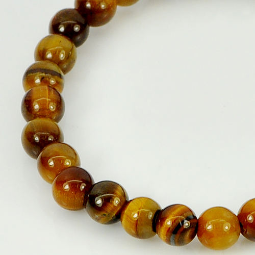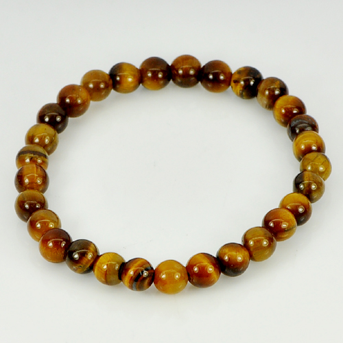 41.41 Ct. Natural Yellow Brown Color Tigers Eye Beads Bracelet Length 6 Inch.