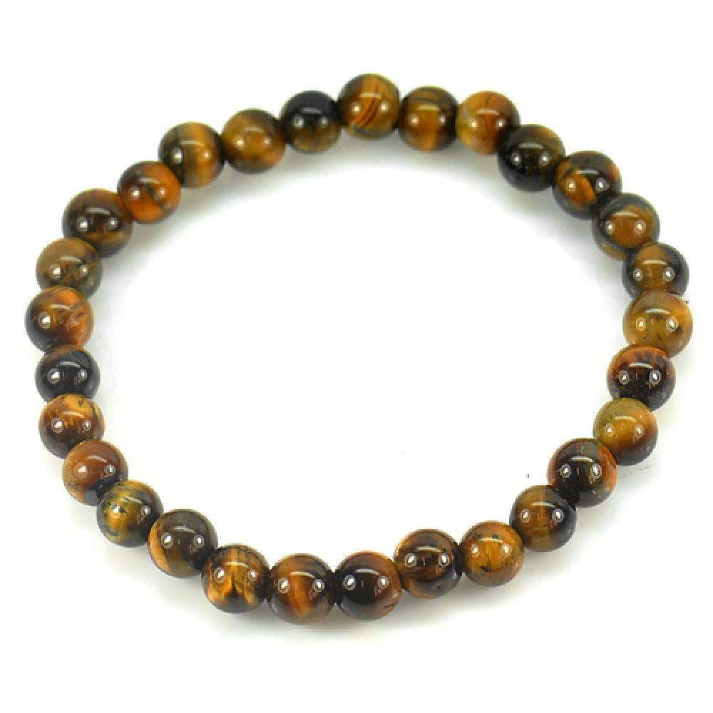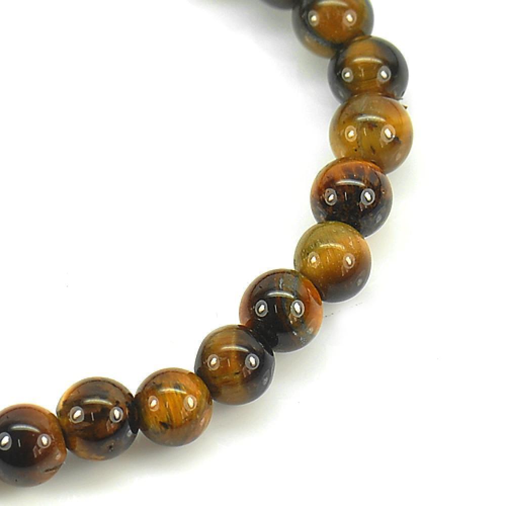 50.34 Ct. Natural Yellow Brown Color Tigers Eye Beads Bracelet Length 7 Inch.