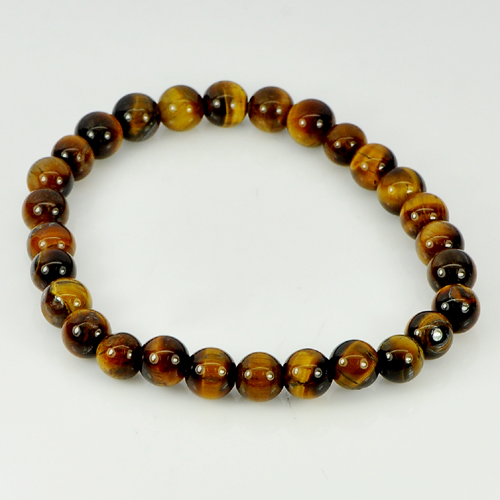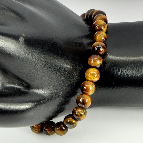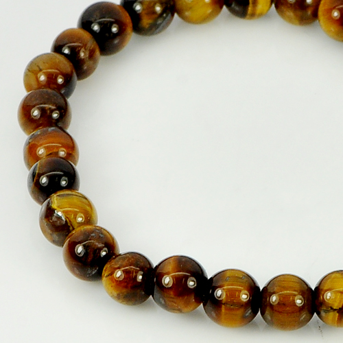 51.23 Ct. Natural Yellow Brown Color Tigers Eye Beads Bracelet Length 7 Inch.