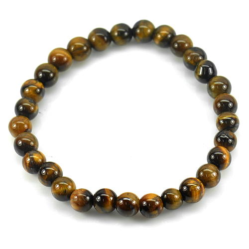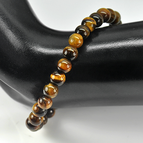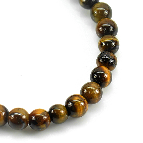 50.79 Ct. Natural Yellow Brown Color Tigers Eye Beads Bracelet Length 7 Inch.