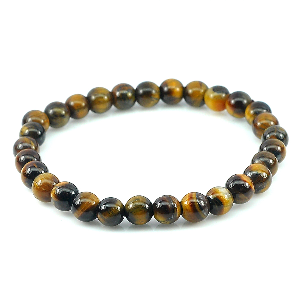 51.26 Ct. Natural Yellow Brown Color Tigers Eye Beads Bracelet Length 7 Inch.