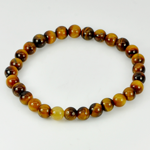 51.00 Ct. Round Cabochon 6.5 mm. Natural Brown Tigers Eye Beads Bracelet 7 Inch.