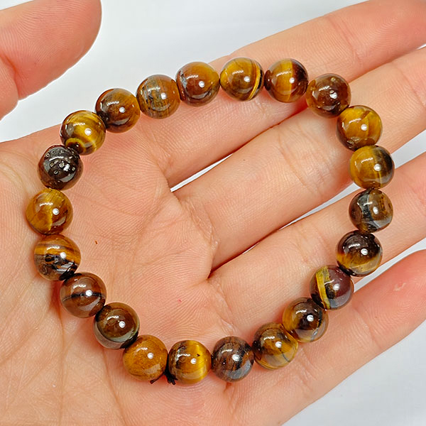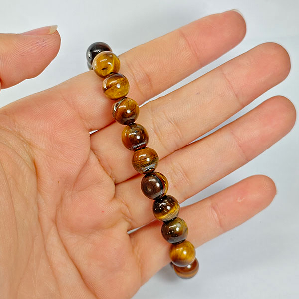 89.71 Ct. Natural Yellow Brown Color Tigers Eye Beads Bracelet Length 6 Inch.