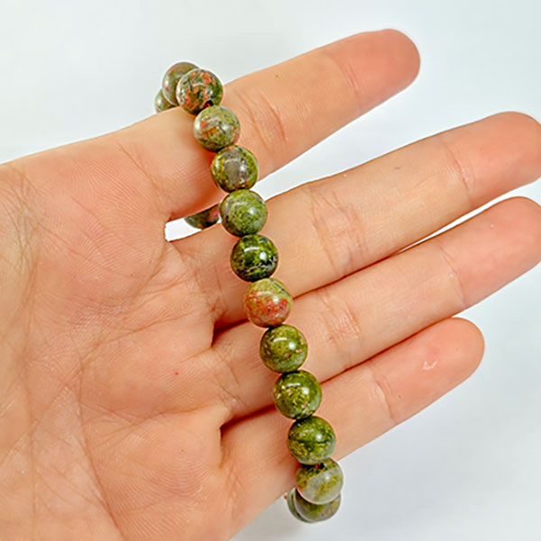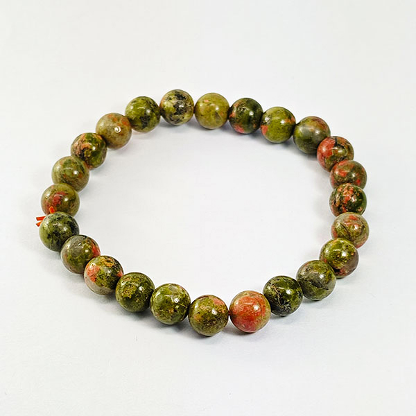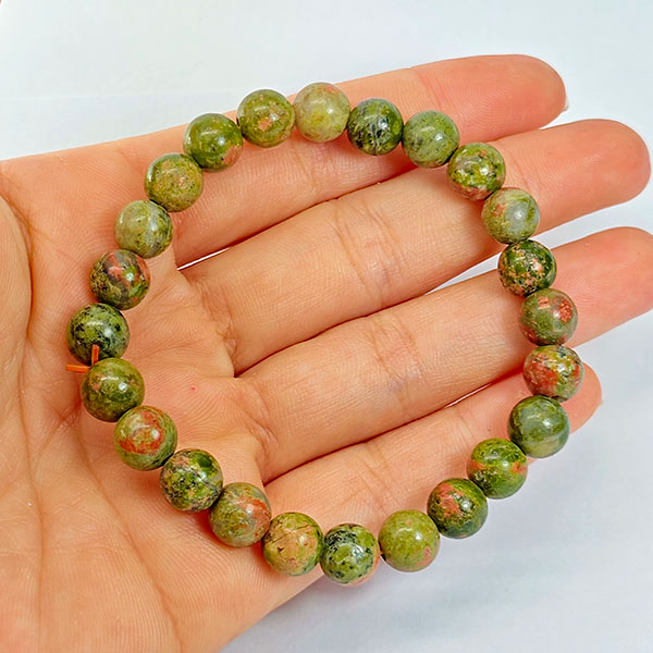 Natural Party Color Unakite 88.02 Ct. Round Cab Beads Bracelet Length 7 Inch