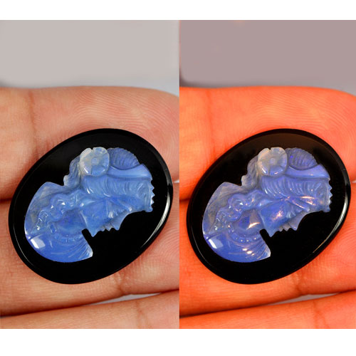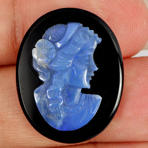 Opal Multi Color 15.27 Ct. Woman Carving Cameo on Onyx Size 25 x 20 Mm. Natural