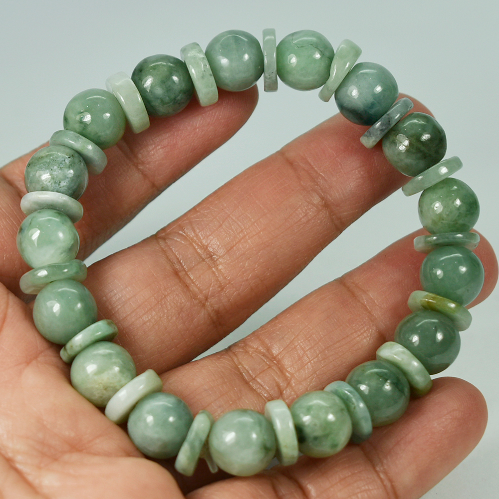 Green Jade Beads Flexibility Bracelet Length 7 Inch. 174.15 Ct. Natural Gemstone